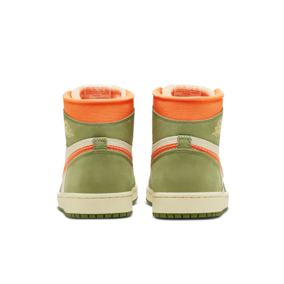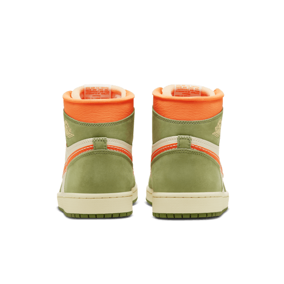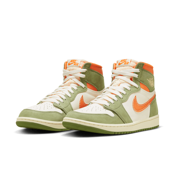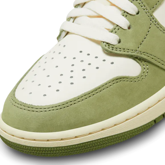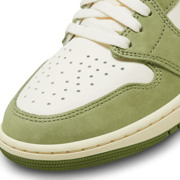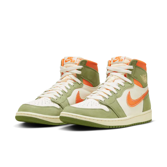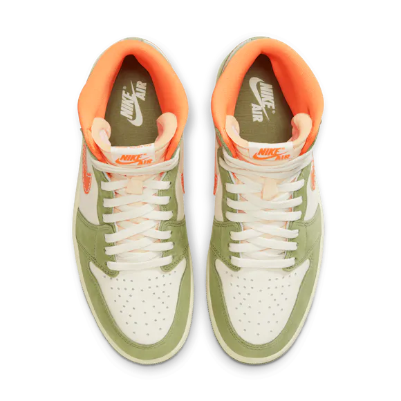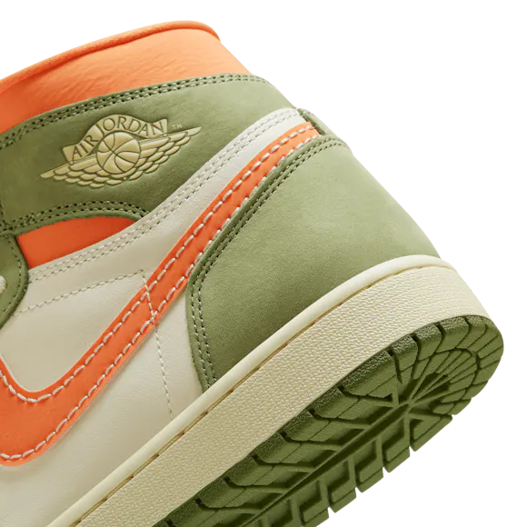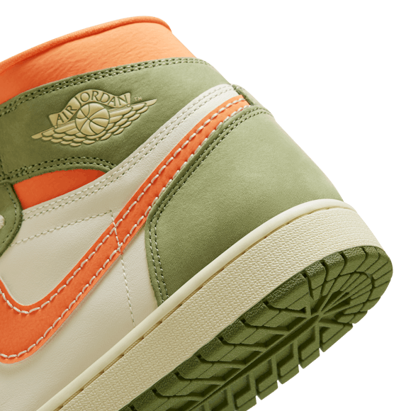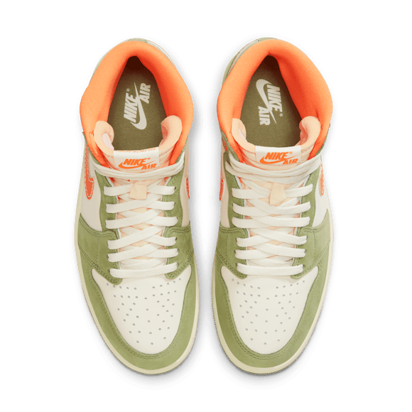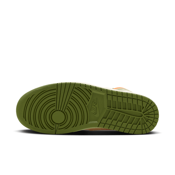 Heat the streets with this crafted take on the AJ1. Luxe leather gets the Light Olive and Pale Ivory treatment, finished to perfection with blazing Bright Mandarin accents. Retro Nike Air branding, an exposed foam tongue and a vintage effect on the midsole make these freshly fired J's look like you've been saving them for ages.