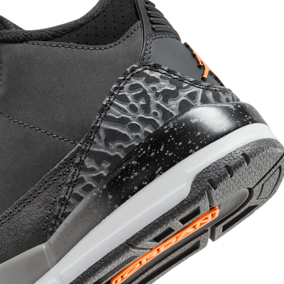 Clean and supreme, the legendary Tinker Hatfield AJ3 design that solidified MJ's place in sneaker lore returns. Signature elephant print reimagines the iconic original look, while luxe leather and suede throughout the upper elevate every step. Highlighting the Jumpman branding, vibrant hits of Total Orange flash against Night Stadium and Black. Smooth like Jordan's game, and ready for you to create your own legacy.