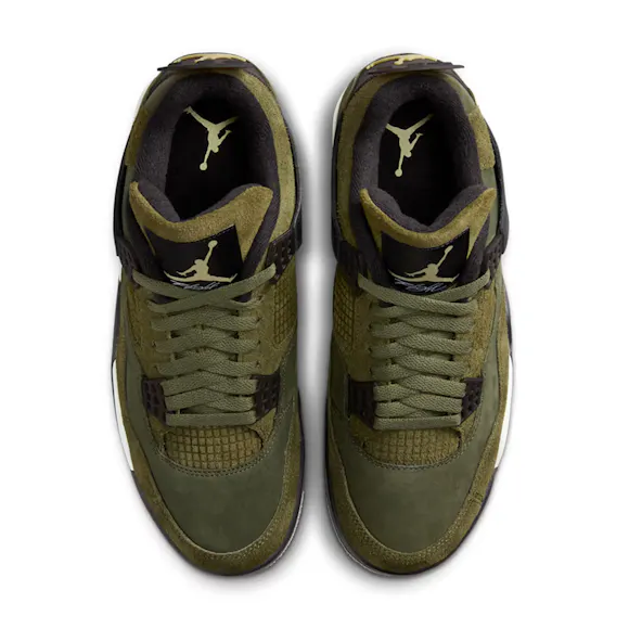 Fall in love with Olive. This edition of the '89 classic features suede, leather and textiles done up in elegant earth tones. The signature mesh-inspired side panels are embossed for a tactile take on the original. And all the other iconic AJ4 elements are there too—like the floating eyestays, wavy mudguard and Jumpman branding.