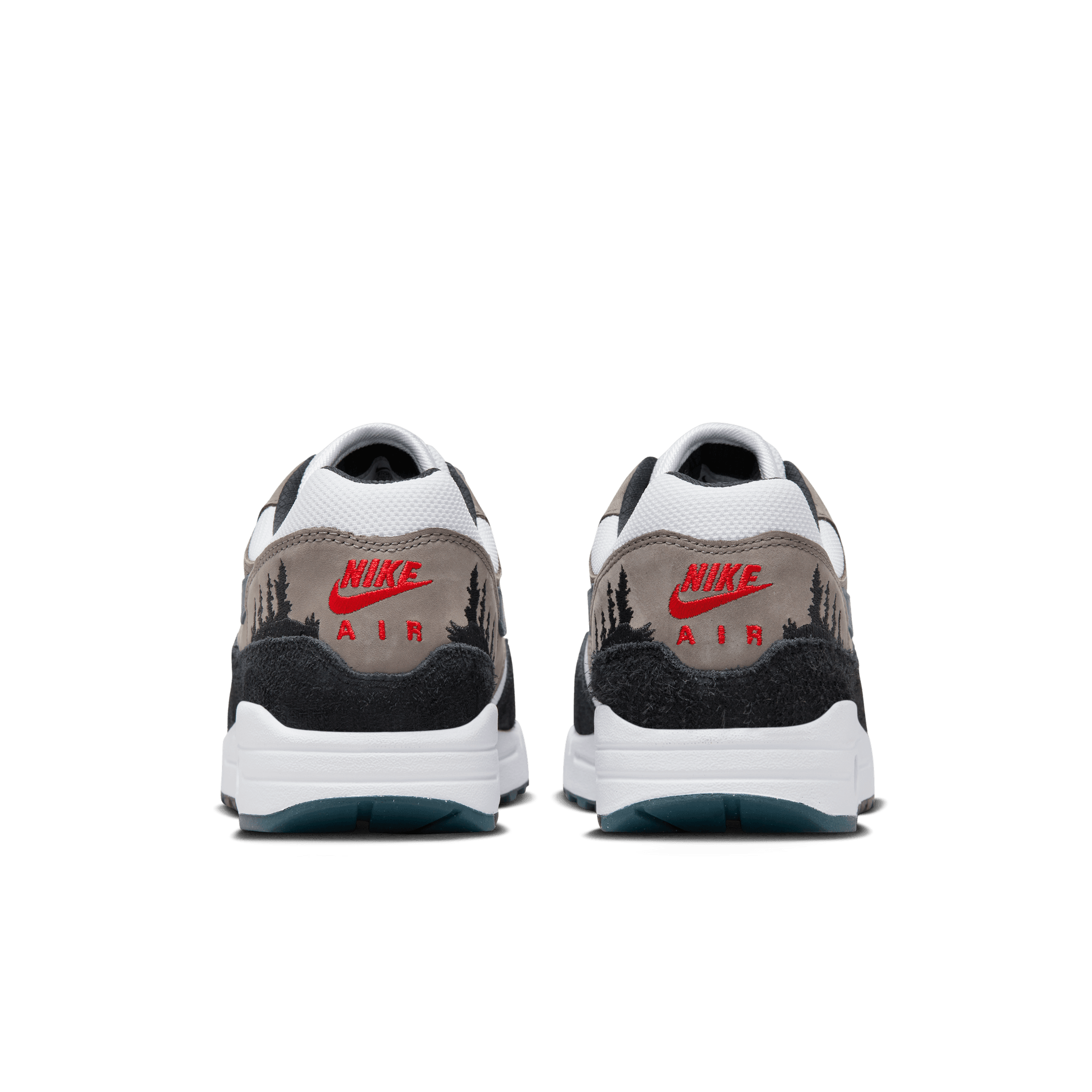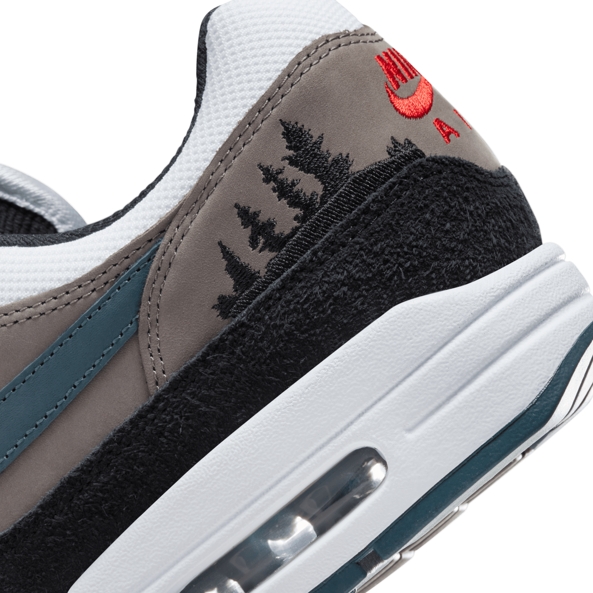 Debuting in 1984, with Mount St. Helens still smoldering on the horizon, the Nike Escape broke away from the ordinary. Celebrating that history, the AM1 "Escape" pairs classic running DNA with Pacific Northwest-inspired details. The striking colors were pulled from an iconic Nike running ad—one that featured Mount St. Helens' caldera billowing in the background. An embroidered forest scene at the heel is worthy of wanderlust. And the rugged suede accents, airy textile, and boot-inspired laces finish your look.