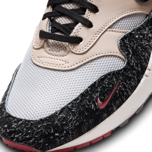 Making its debut in 2008, the coveted "Keep Rippin, Stop Slippin" Air Max 1 returns with a 2.0 take on the praised OG. Reimagining the safari print mudguard and Swoosh panels, this edition pairs shaggy suede with Vast Grey mesh and smooth Pearl White leather. Custom graphics, revealed through the partially translucent waffle sole, merge a mix of graphics from the original pack.