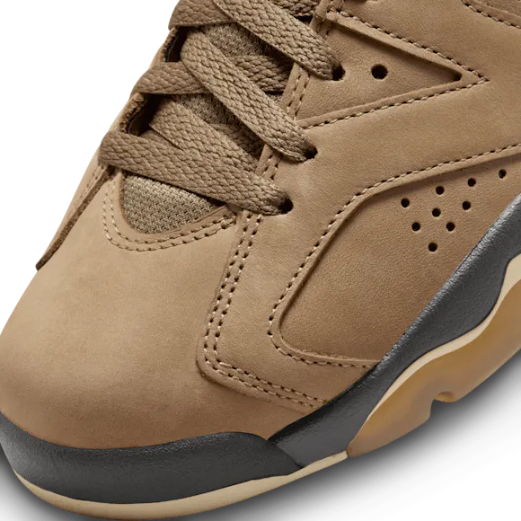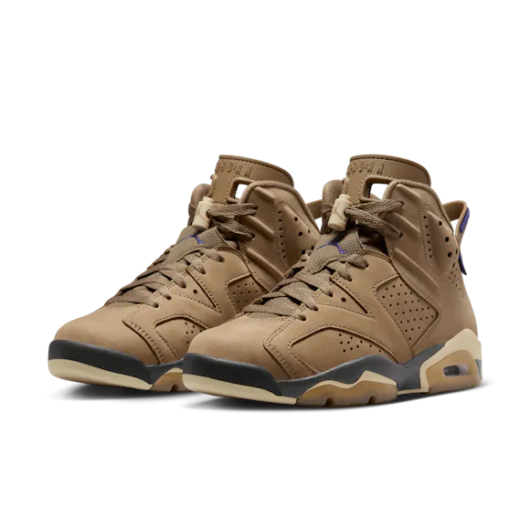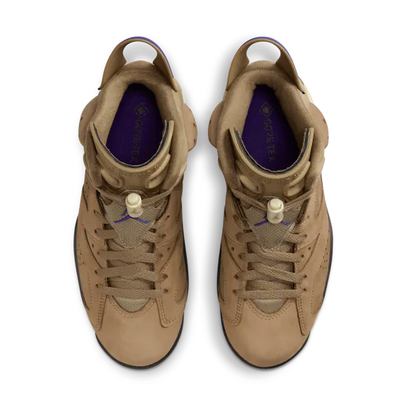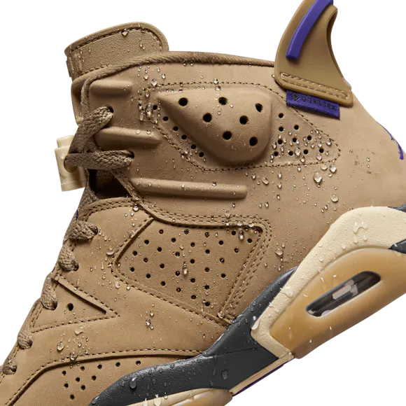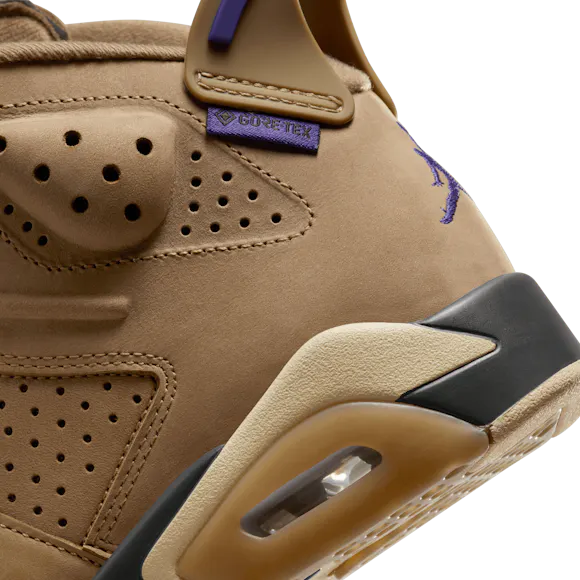 Rain or shine, it's time to continue the championship legacy of the AJ6. This rendition features a waterproof GORE-TEX treatment so you can rock your J's all year long. Premium Brown Kelp leather adds seasonal style while the signature cut-away tongue and heel-pull nod back to the original. For the big finish, Court Purple accents highlight that iconic Jumpman branding. With shoes this good, there's no such thing as bad weather.