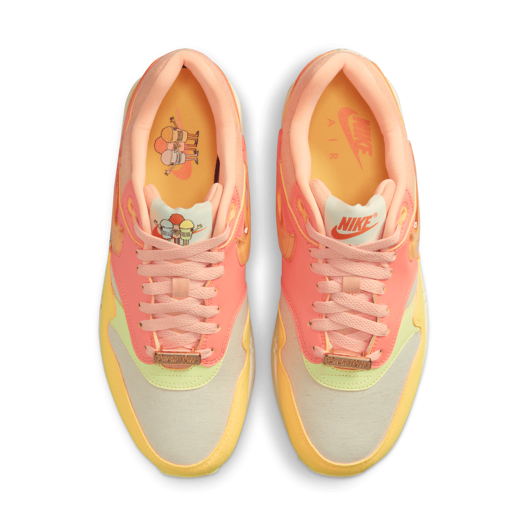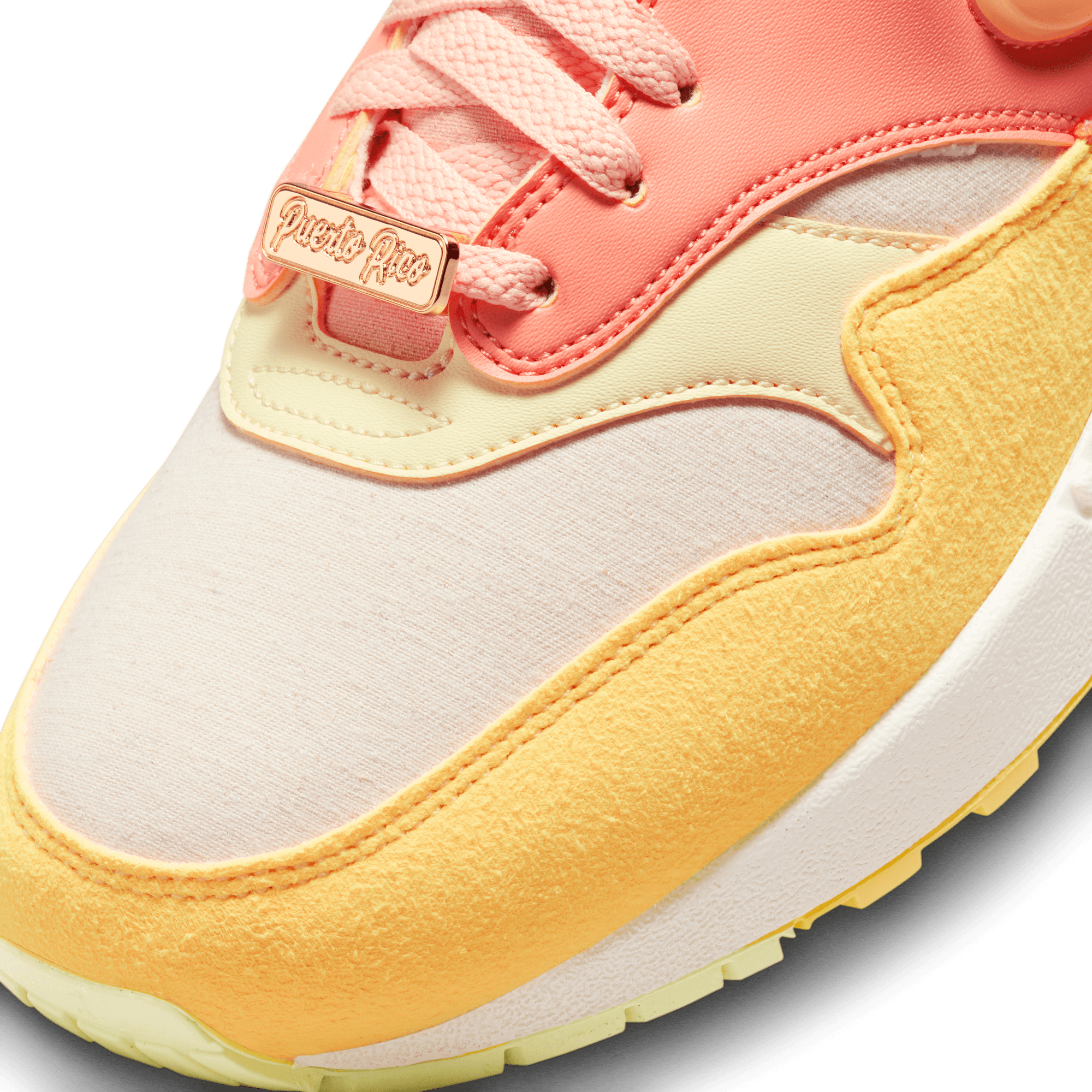 ¡Qué calor! Grab your towel, favorite flavor of helado (coco, parcha, piña) and this refreshing Air Max 1. Honoring Boricua life, the design takes you from the city to the water's edge with thirst-quenching style. These colors celebrate the icy, fruit-flavored treats savored throughout Puerto Rico, while helado cart graphics brings the orgullo of home straight to your feet.