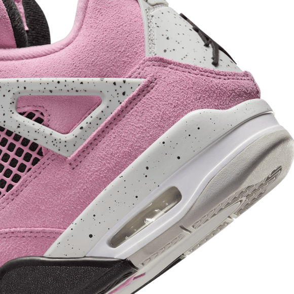 In '89, MJ took flight in the Air Jordan 4. After 35 years, this buzzer-beating Orchid suede edition lands softly off the court—poised and ready to punctuate your favorite 'fits. Smooth black and speckled Neutral Grey accents bring familiarity to this iconic shoe, also making it easy to style.